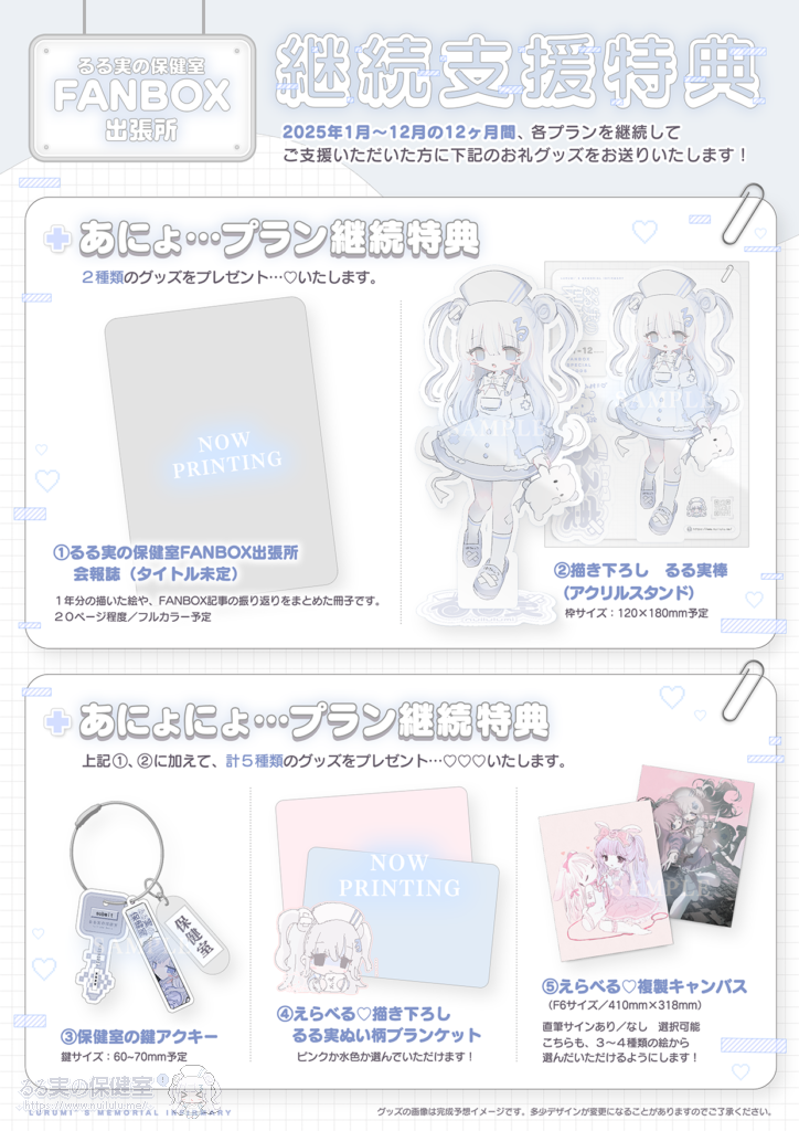 るる実からも、できるかぎりお礼ができればいいなと思い、継続支援特典を企画いたしました。